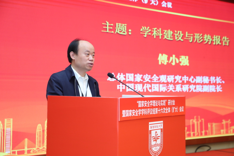 郑贤操代表学校在开幕式致辞,他向与会的各位领导和专家表示热烈欢迎,并向国家安全学学科评议组对学校学科建设的高度信任和大力支持表示衷心感谢。他介绍了学校的办学特色以及国家安全学学科建设情况,提出学校将立足湾区,聚焦国家安全重大理论和实践问题,以经济安全为主攻方向,打造国家安全学自主学科体系,发挥科研和人才培养优势,守好国家安全“南大门”。