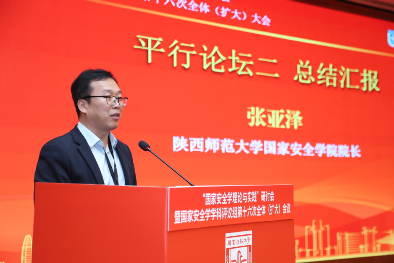 总结会议由国家安全学学科评议组召集人、中国人民公安大学原党委书记、校长程琳主持。清华大学安全科学学院国家安全研究所所长陈建国代表平行论坛一进行总结,陕西师范大学国家安全学院院长张亚泽代表平行论坛二进行总结,新疆大学国家安全学院院长、政治与公共管理学院院长韩隽代表平行论坛三进行总结,大连海事大学公共管理与人文艺术学院院长储建国代表平行论坛四进行总结。