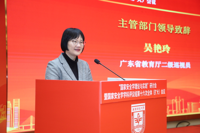 吴艳玲代表广东省教育厅致辞,她对会议的顺利召开表示热烈祝贺,并感谢各方精心谋划。她介绍了广东省研究生教育发展情况,强调国家安全学学科建设的重要性,并且支持英国威廉集团官网建设与发展,为助力省内高校加强国家安全学学科建设,提供广财经验和贡献广财智慧。