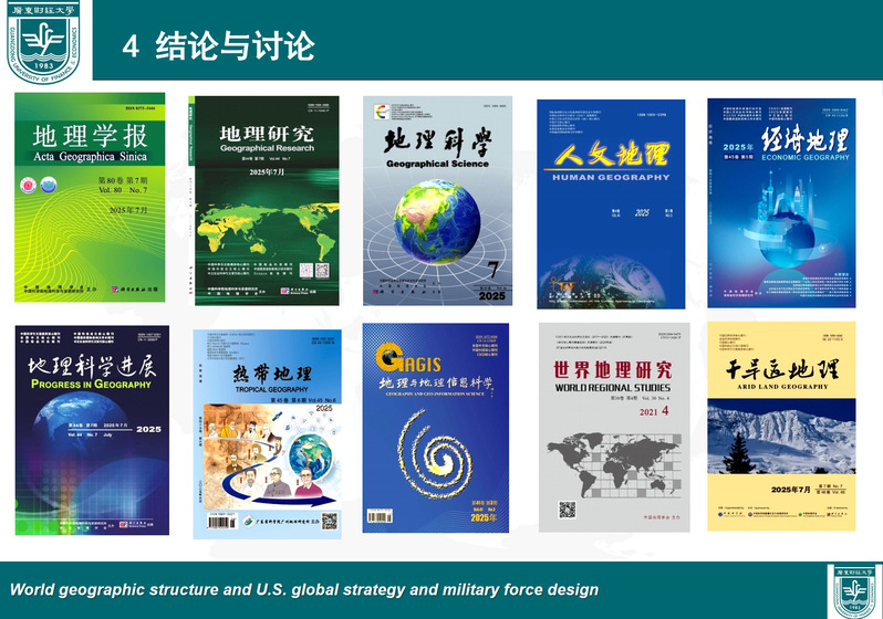 郭卫东老师首先解读了《世界地理结构与美国的全球战略及军力设计》一文,从地理结构视角出发,对世界地理结构的基本特征、美国的地理区位与全球战略、基于防范欧亚大陆出现区域性霸权的美国军力设计和落脚当前中美博弈中地缘政治特点几个方面展开解读。结合马汉“海权论”、斯皮克曼“边缘地带论”等基础理论与美国战略实践,不仅为理解美国全球战略提供了参考,也为当前和未来的大国博弈和中国崛起之路带来不同的思考维度。随后郭卫东老师分享了地缘政治与国家安全研究领域相关的地理学期刊和投稿方向,推荐了《地理学报》《地理研究》《地理科学》《世界地理研究》等权威中文期刊,给想要进一步研究该方向的同学提供了宝贵的学术参考和发表指引。