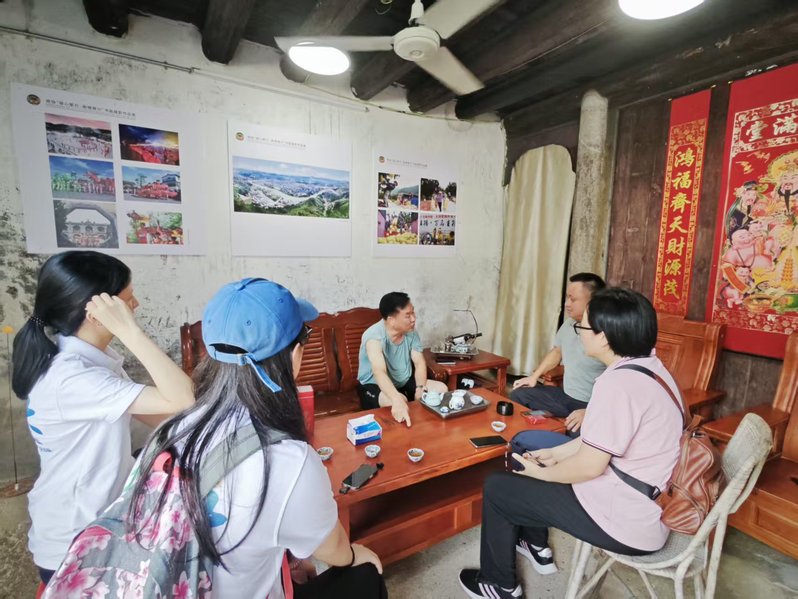 第三站团队走进梅县区雁洋镇桥溪村——朱芷秀故居,实地考察朱芷秀中西合璧的家族故居群,感受其所蕴含的客商精神;聚焦长教与桥溪渊源、朱氏家族南洋经商、反哺家乡等,与长教村前老书记进行了深度访谈。此外,团队一行还参观了大埔县博物馆和客家博物馆,通过文物展陈与史料记载,进一步夯实对当地侨商文化发展脉络与区域历史变迁的认知,系统梳理了客家文化与粤商精神的内在联系。