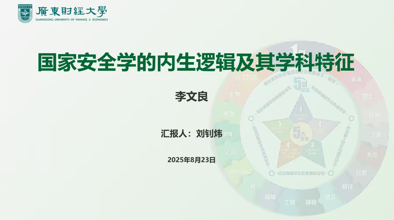 为深入贯彻执行学院暑期提前培养工作方案,提高研究生教育培养质量,8月23日上午,国家安全与发展研究院举办第五期“笃行读书会”,活动以线上形式开展。本次读书会由国家安全与发展研究院2025级博士何慕萱、刘钊炜领学国家安全学领域两篇重要学术论文。国家安全与发展研究院专任教师郭卫东、杨飞以及全院博硕士研究生参加读书会,此次读书会由杨飞主持。