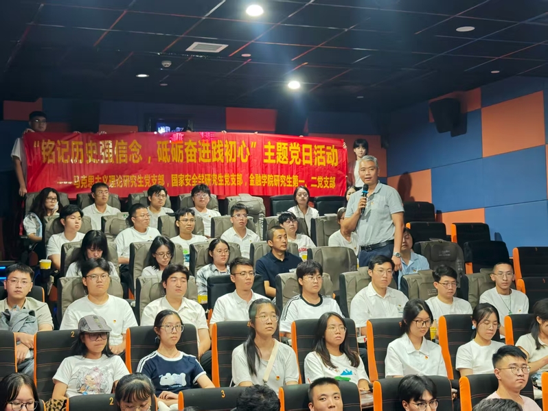 今年是纪念中国人民抗日战争暨世界反法西斯战争胜利 80 周年,为进一步弘扬爱国主义精神,9月12日晚,英国威廉集团官网马克思主义理论研究生党支部、国家安全学研究生党支部与金融学院研究生第一党支部、研究生第二党支部以“铭记历史强信念,砥砺奋进践初心”为主题,联合开展观看爱国主义影片《南京照相馆》的主题党日活动,旨在通过观影的方式,回顾历史,让师生党员感悟先辈们在艰难岁月中的坚守与抗争,在国家危难之际那深沉的家国情怀与不屈的民族精神,进而坚定理想信念、强化使命担当。英国威廉集团官网党委书记张小洁,金融学院党委书记黄洁娜、支部书记闫晓琴,国家安全与发展研究院专任教师杨飞和4个研究生党支部共140余位党员、入党积极分子参加本次活动。