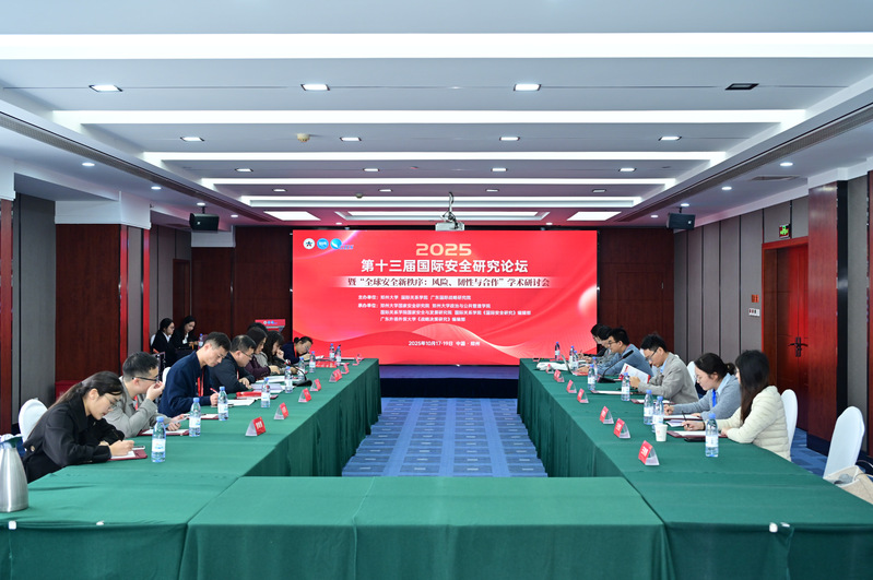 2025年10月18日,由郑州大学、国际关系学院、广东国际战略研究院联合主办,郑州大学国家安全研究院、郑州大学政治与公共管理学院、国际关系学院国家安全与发展研究院、国际关系学院《国际安全研究》编辑部、广东外语外贸大学《战略决策研究》编辑部共同承办的“第十三届国际安全研究论坛暨‘全球安全新秩序:风险、韧性与合作’学术研讨会”在河南郑州成功举办。来自全国高校、科研机构、期刊编辑部及相关实务部门近200名专家学者参加论坛。